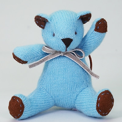 高級カシミヤ製ミニ・テディベア。NYブルー色のティファニー・ミニベア【12cm】
