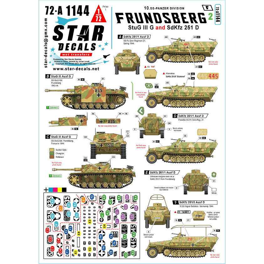 72-A1144 1/72 WWII ドイツ 第10SS装甲師団「フルンツベルク」の車輌#2 III号突撃砲G型/Sd.Kfz.2...