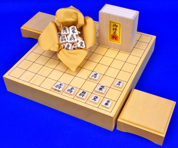 将棋セット 新桂7号折将棋盤セット(木製将棋駒アオカ押し駒・駒台)