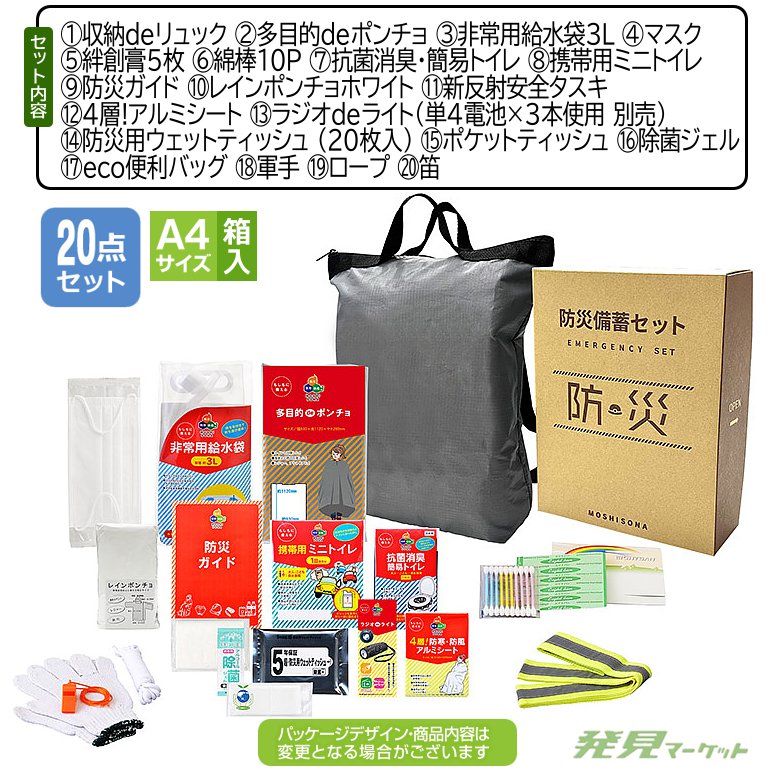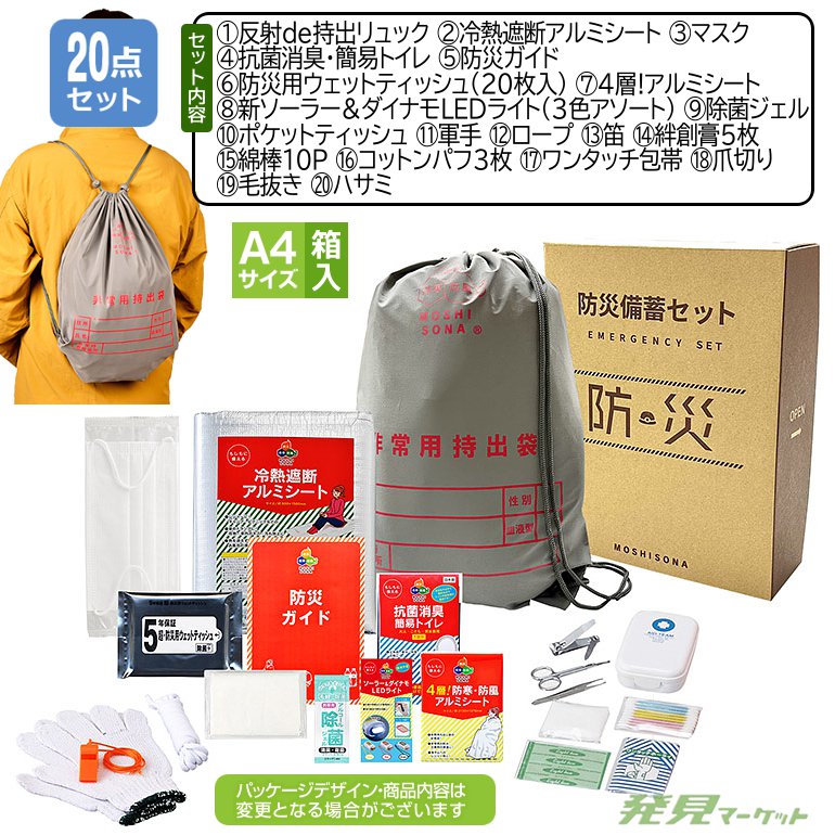 A4ボックス反射de持出リュック20点セット