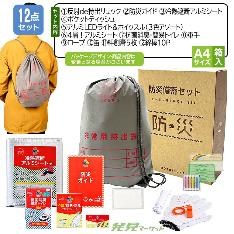 A4ボックス反射de持出リュック12点セット