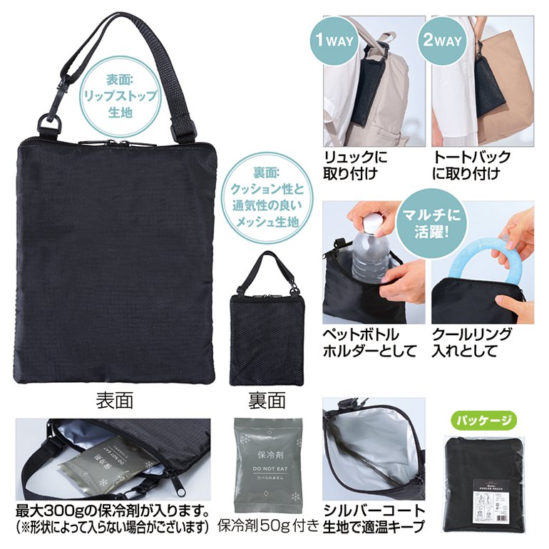 簡単取付 リュックにも使えるマルチ保冷ポーチ(保冷剤付き)