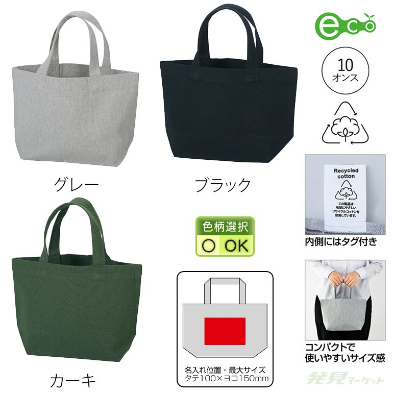 スフィア・リサイクルコットンランチトートバッグ(マチ付)(色選択)