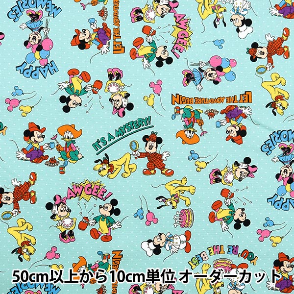 【数量5から】 生地 『オックス ミッキー&フレンズ レトロピンドット柄 ミントグリーン G-7436-1A』 KOKKA コッカ