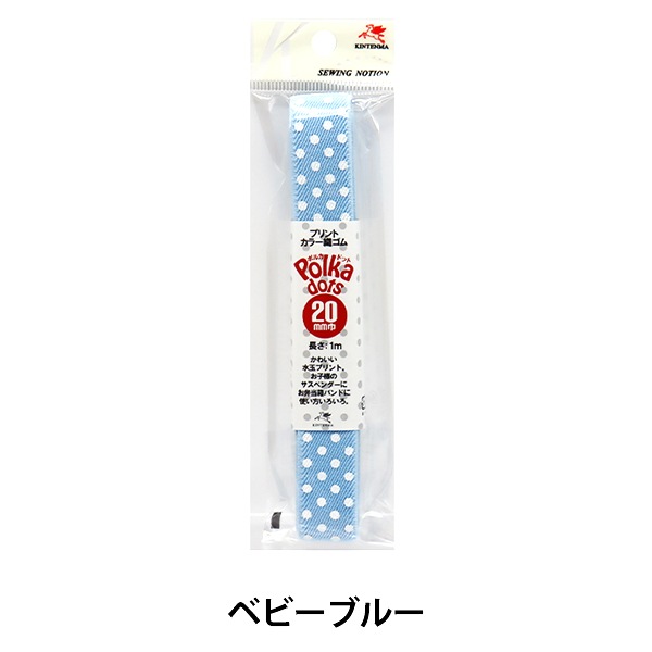 手芸ゴム 『プリント カラー織ゴム Polka dots(ポルカ ドット) ベビーブルー 幅2cm KW82031』 KINTEN...