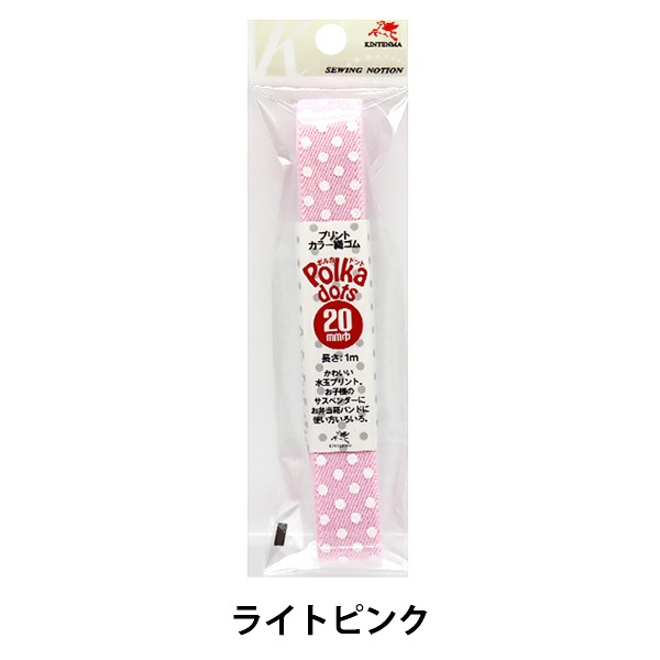 手芸ゴム 『プリント カラー織ゴム Polka dots(ポルカ ドット) ライトピンク 幅2cm KW82030』 KINTEN...