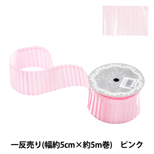 フリルリボンテープ 『プリーツフリルリボン 5cm幅×約5m 一反売り ピンク W57700』