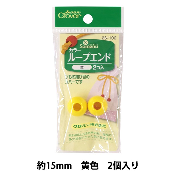 ひも止め 『カラーループエンド 15mm 黄 26-102』 Clover クロバー