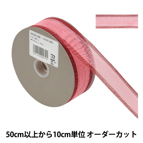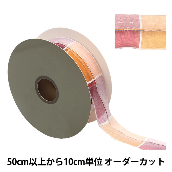 【数量5から】 リボン 『SUキュービック 幅約40mm レッド/アプリコット 1番色 48810』 TOKYO RIBBON 東...