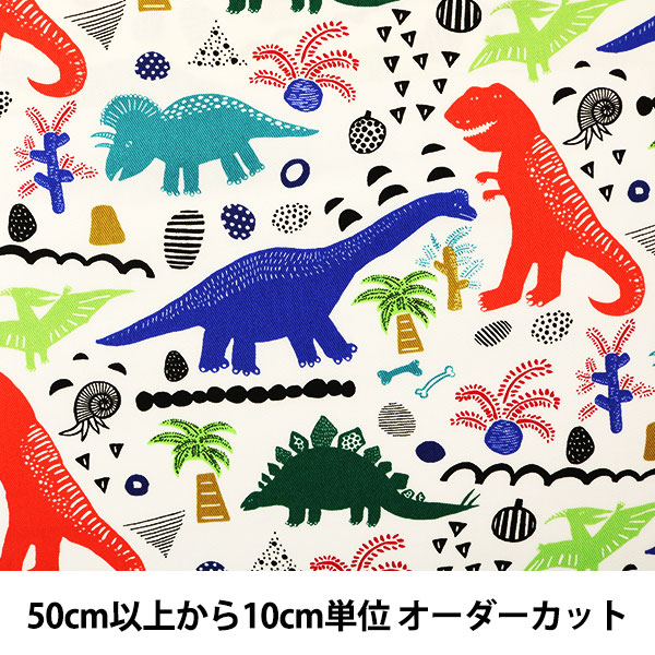 【数量5から】 生地 『ツイルプリント生地ツイル 恐竜 生地 布 入園 入学 インテリア A白』 COTTON KOBAYASHI...