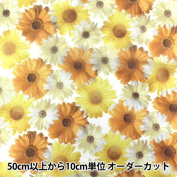 【数量5から】 生地 『オーガンジープリント ガーベラ 1056 イエロー』