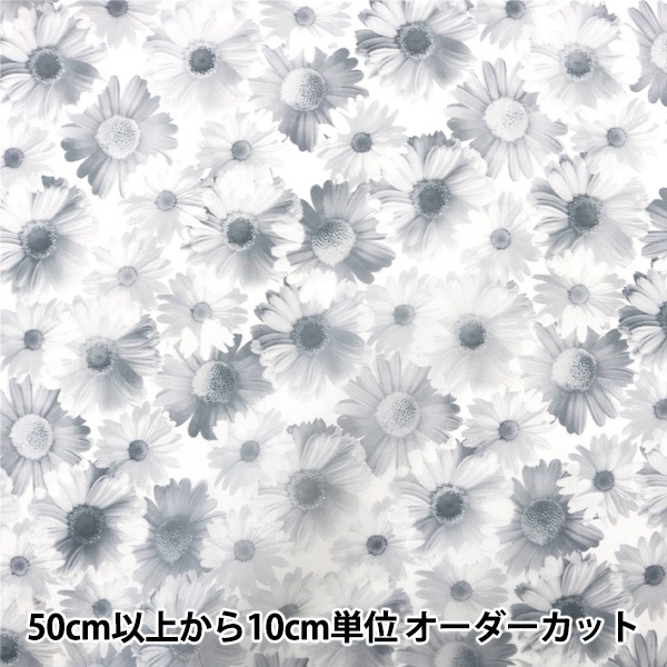 【数量5から】 生地 『オーガンジープリント ガーベラ 1058 モノトーン』