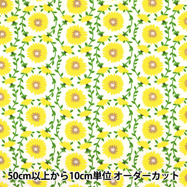 【数量5から】 生地 『オックスプリント 花柄 白×黄色 201029-3』
