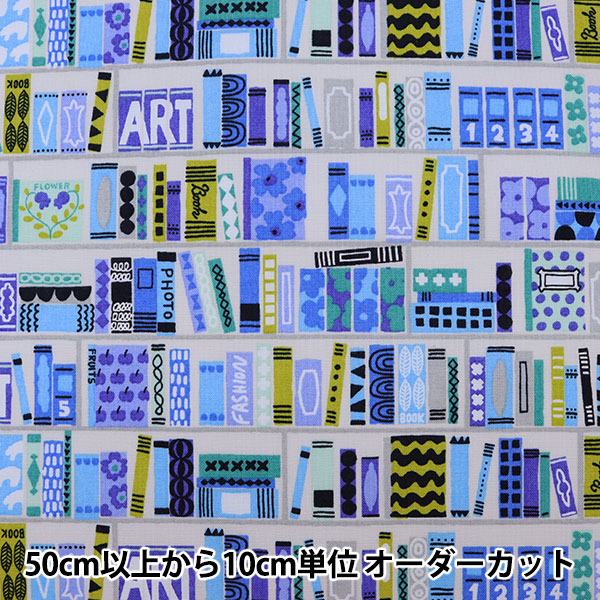【数量5から】 生地 『シーチングプリント 本棚柄 ブルー 99099-2B』