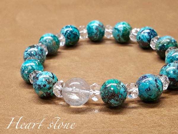 【限定1点】青と大地が溶け合う癒しの彩りクリソコラ×ホワイトルチルクォーツ×水晶の天然石ブレスレット