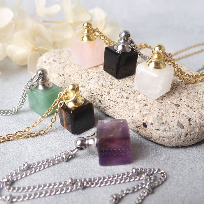 【天然石 香水瓶 】ペンダント ネジ式 四角型 アロマ 遺骨入れ チャーム 1個 天然石 ハンドメイド