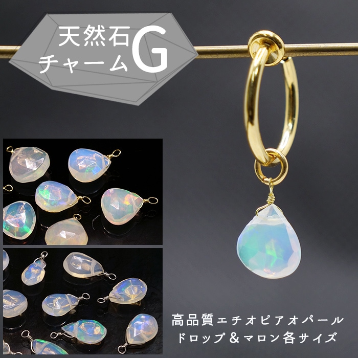 【07】天然石チャームF エチオピアオパール【マルカン取付サービスあり】シャンク巻き メガネ留め めがね留め ハンドメイド チャー...