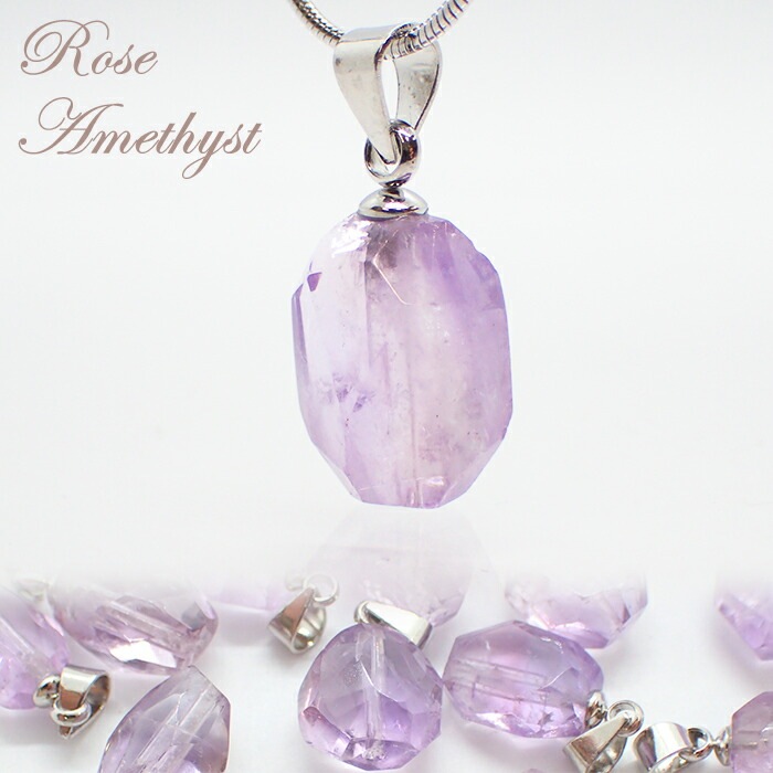 【6】 ローズアメジスト ペンダントトップ 1個 【ネックレスお仕立て対応可】シルバー マダガスカル産 アメジスト 水晶 天然石 ...