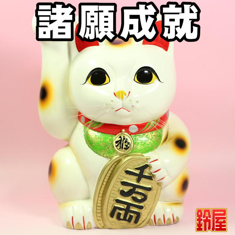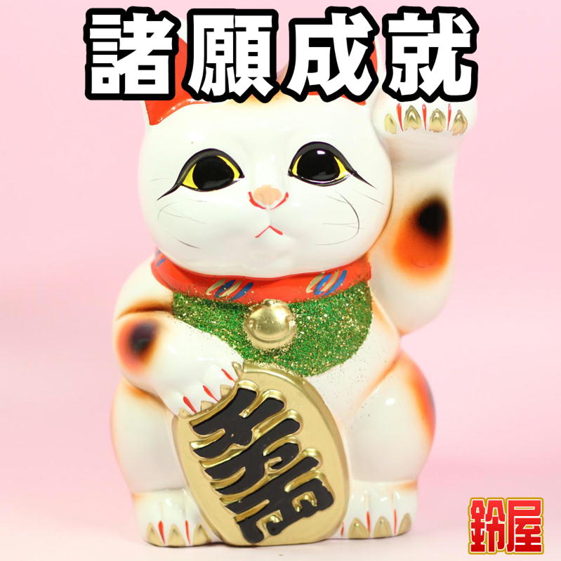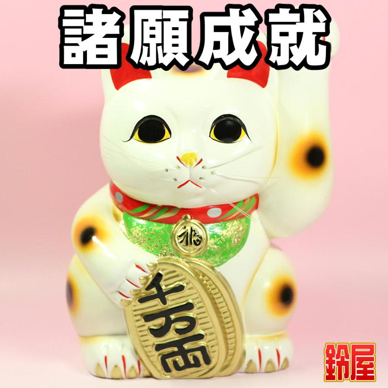 白色の左手上げ招き猫の置物|常滑焼招き猫を販売