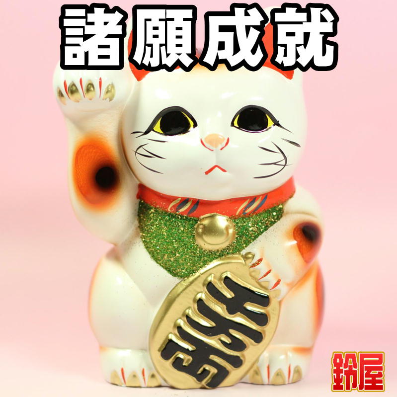 白色の右手上げ招き猫の置物|常滑焼招き猫を販売