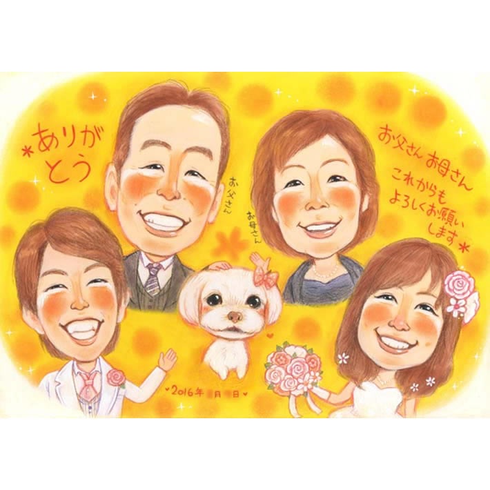 両親への感謝を込めた ウェディング似顔絵ギフト 新郎新婦からの感謝を込めた似顔絵ギフトなら、両親が喜んでくれること間違いなし オリ...