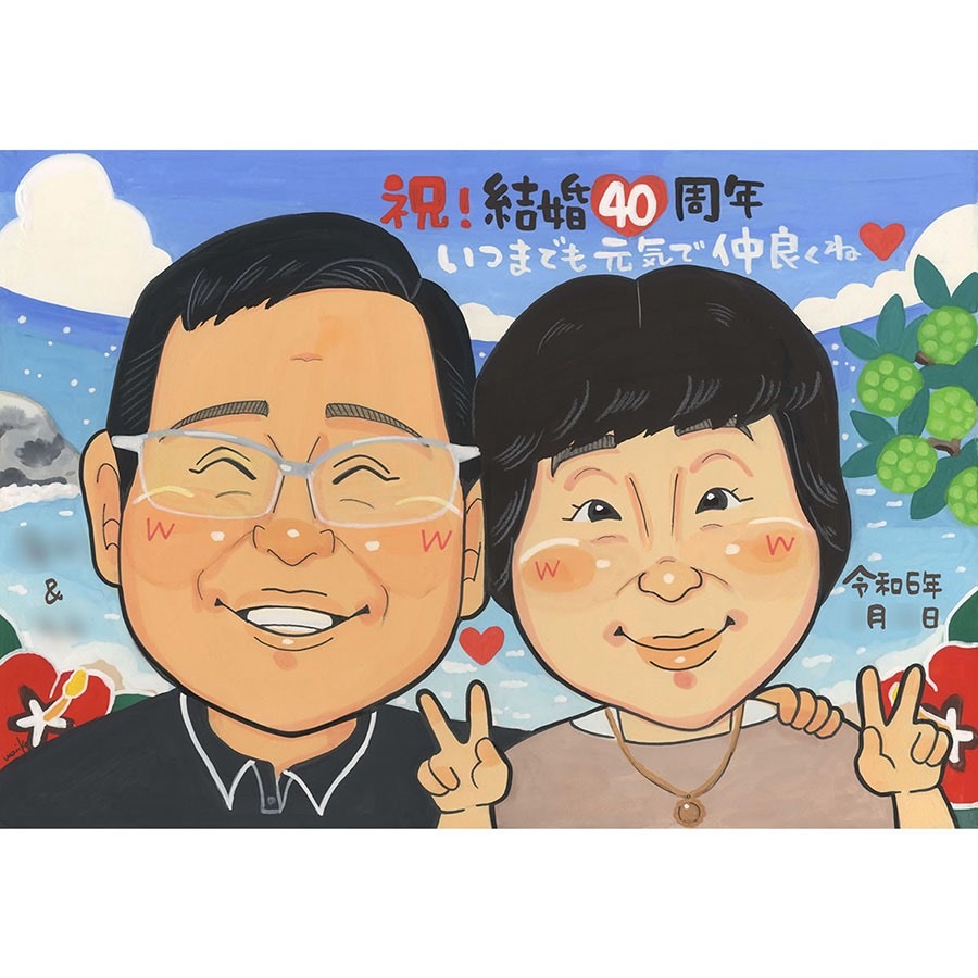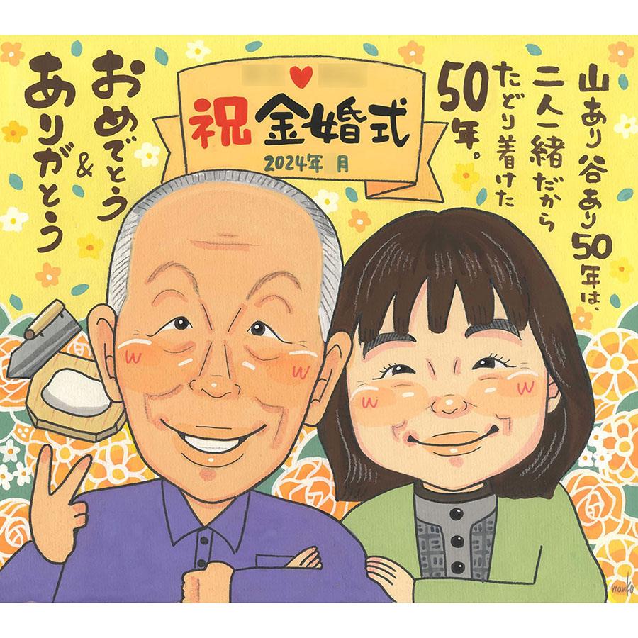 50周年記念日に贈る両親への似顔絵プレゼント 感動の両親似顔絵ギフト