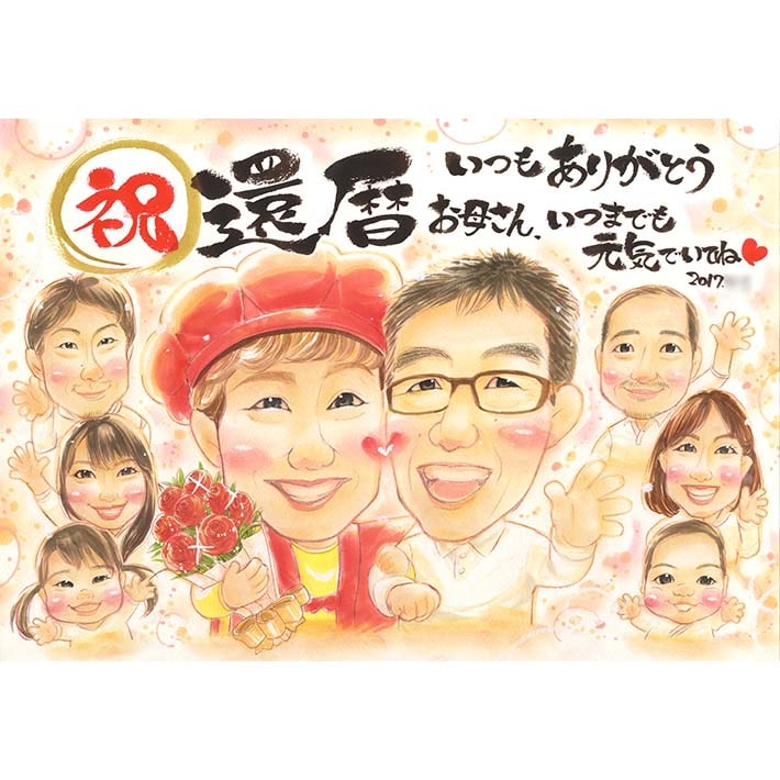 家族みんなで喜ぶ還暦の思い出 似顔絵ギフト 長寿を祝う、愛情たっぷりのお祝いプレゼント似顔絵 還暦祝いに贈る、世界でたったひとつの...