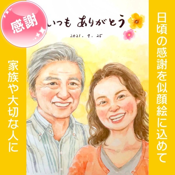 似顔絵 家族や親せきからもらってうれしい記念日ギフト 両親に贈るプレゼント 両親の喜ぶ顔が見たい mariko 写真から似顔絵 贈...