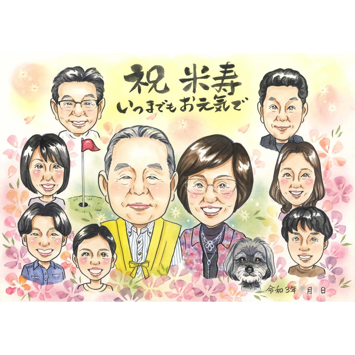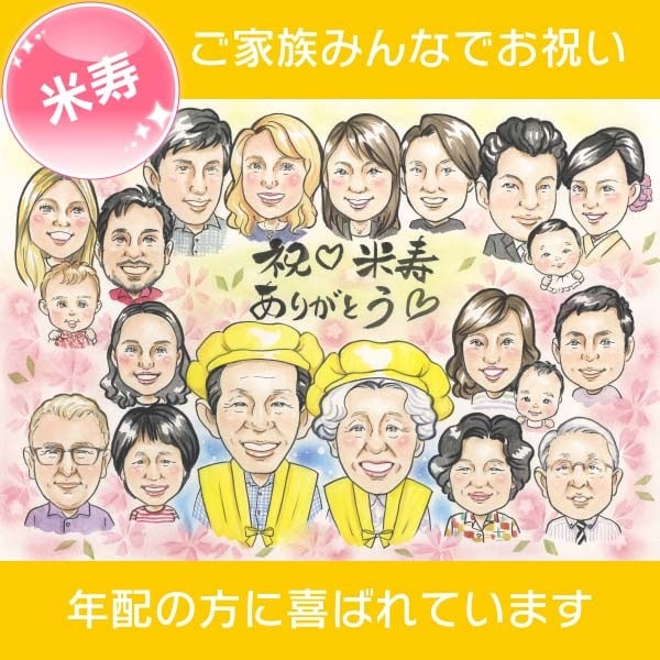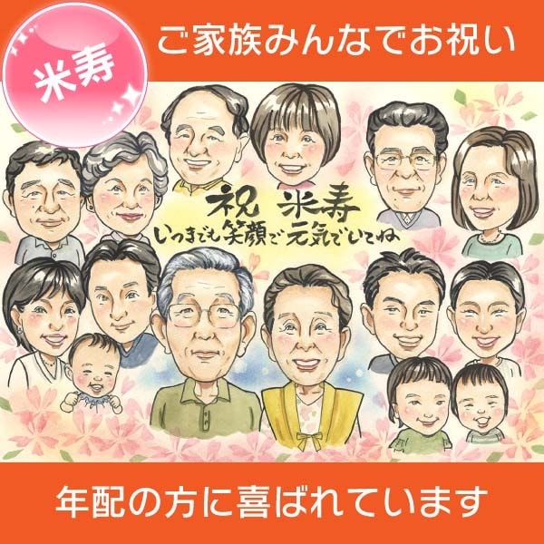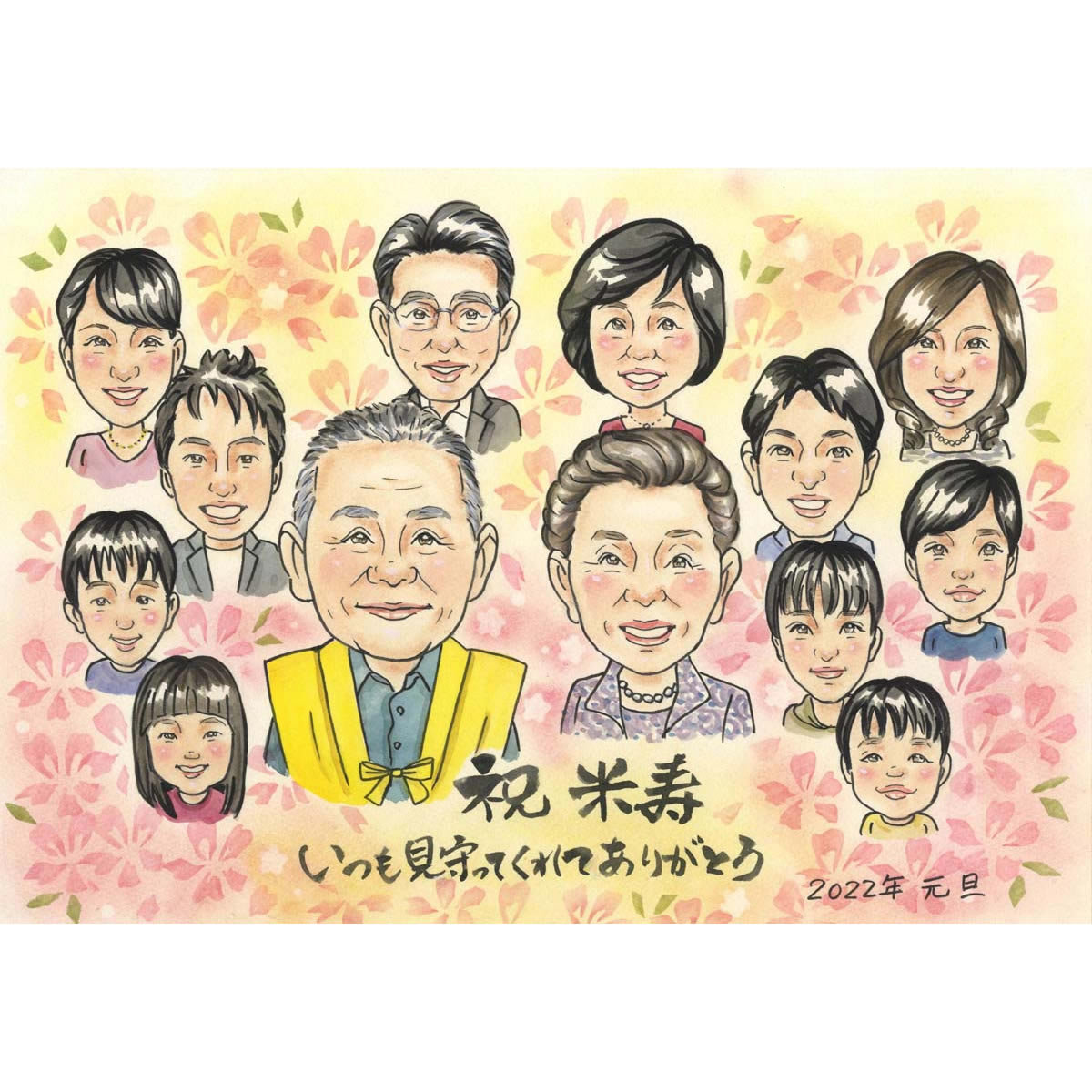 祝・米寿!家族とともに楽しむオリジナル似顔絵プレゼント 家族の愛がたっぷり詰まった、米寿のお祝いにぴったりの似顔絵プレゼント 米寿...