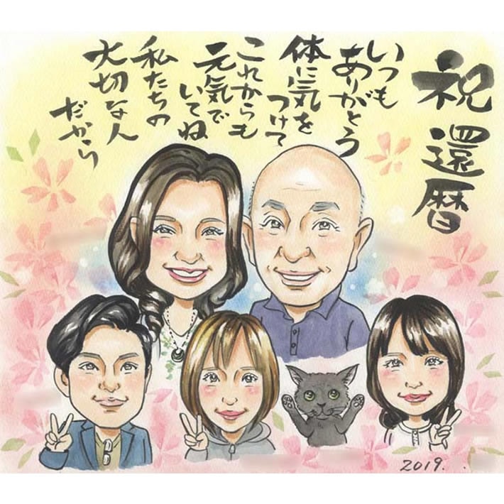 還暦を迎えた方へ贈る最高のプレゼント!還暦を祝う思い出の一枚!還暦おめでとう似顔絵 人生の節目を記念する特別な贈り物
