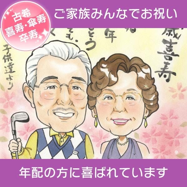 定年退職祝い 似顔絵 早い サプライズ サファイア婚 両親 似てる 両親 結婚10周年 古希 イラスト 喜寿祝い 真珠婚 92 歳...