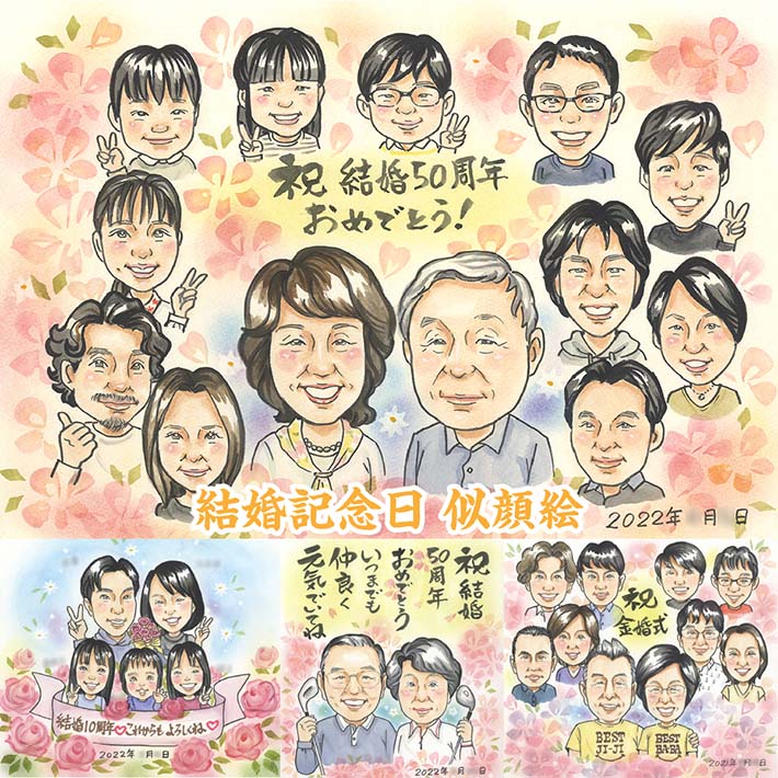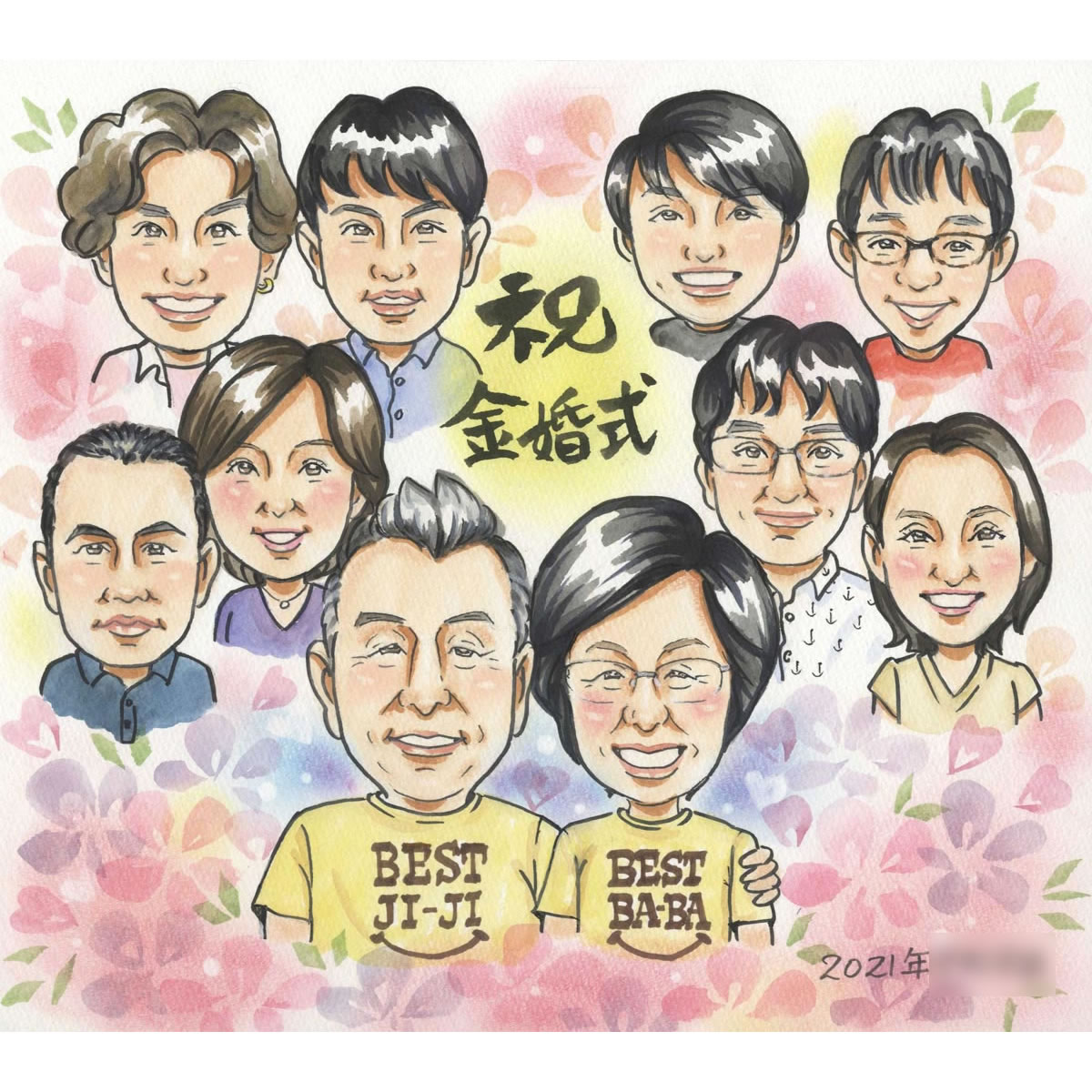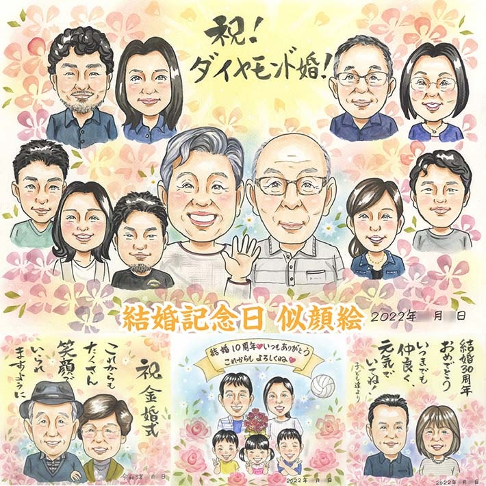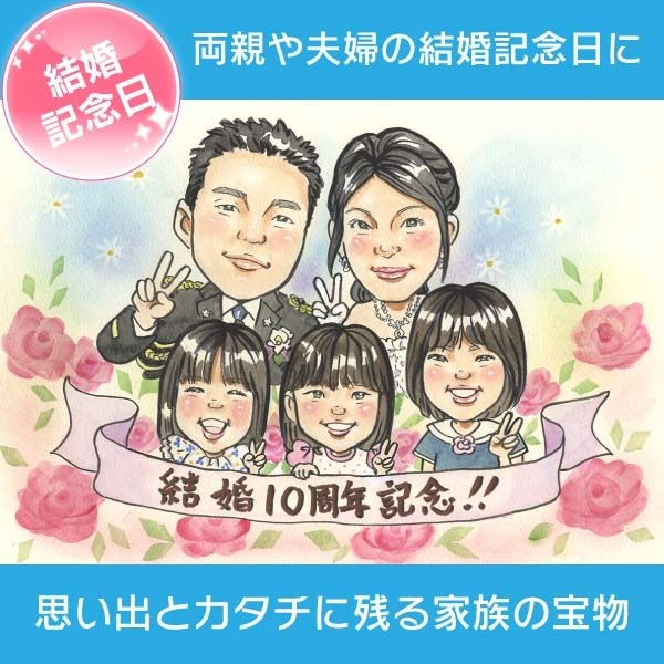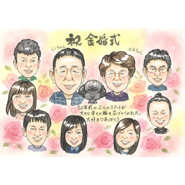 結婚記念日に 見れば見るほど好きになる家族の記念にもなるお祝い似顔絵 結婚50周年 金婚式 銀婚式 ルビー婚式 真珠婚式 COSM...
