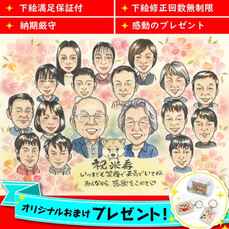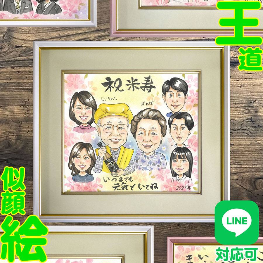 米寿 88歳 似顔絵 大人数 プレゼント 記念日 誕生日 ギフト お祝い 贈り物 名入れ 手描き 似顔絵色紙 長寿祝い 似顔絵イラ...