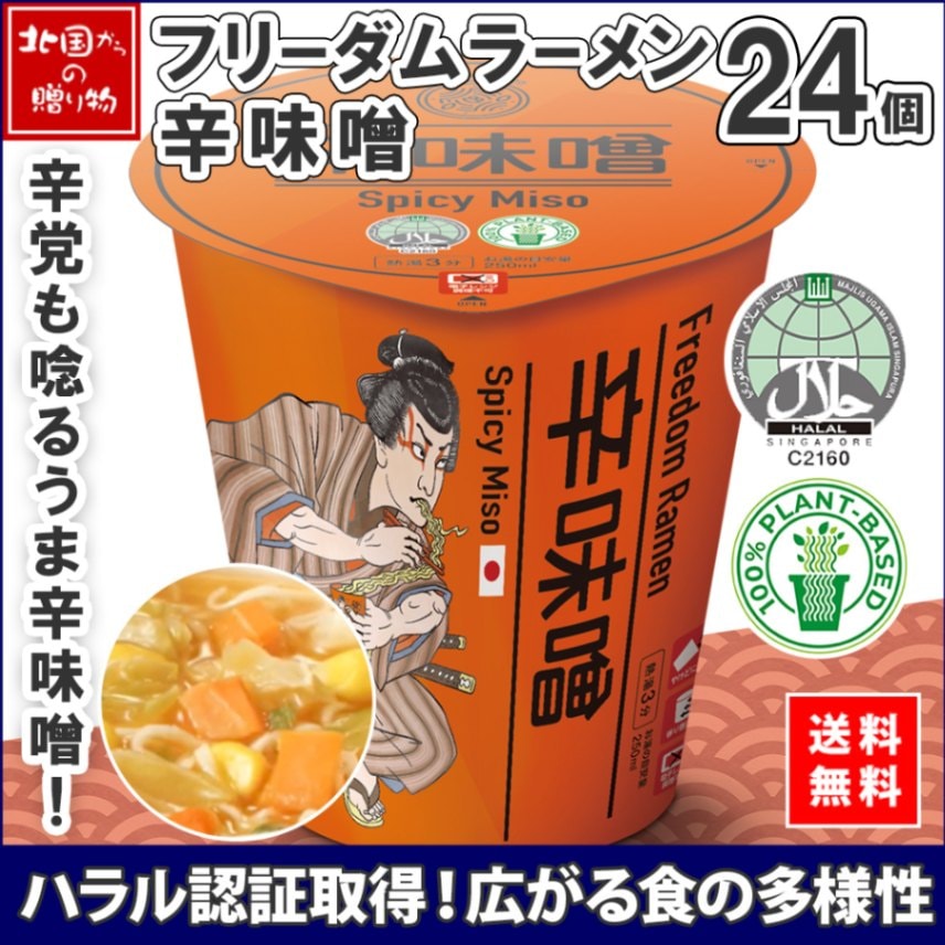 ハラル認証 フリーダム ラーメン 辛味噌 24個 freedom ramen spicy miso カップラーメン ハラル カップ...