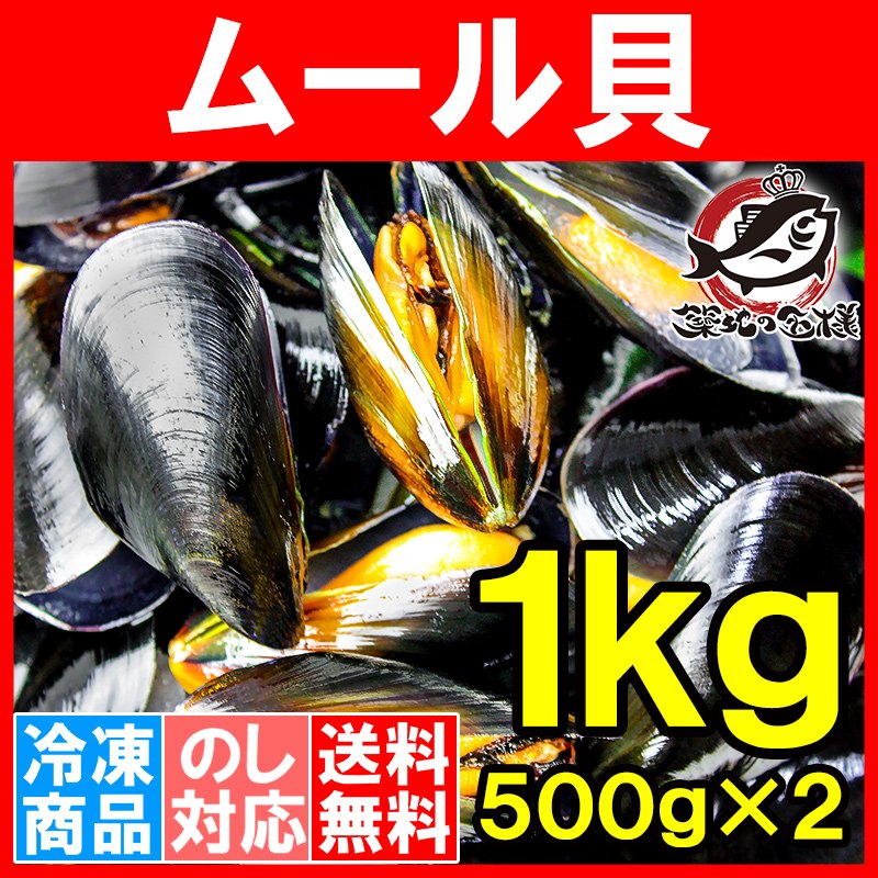 送料無料 ムール貝 1kg(ボイル・殻つきムール貝・500g×2パック)