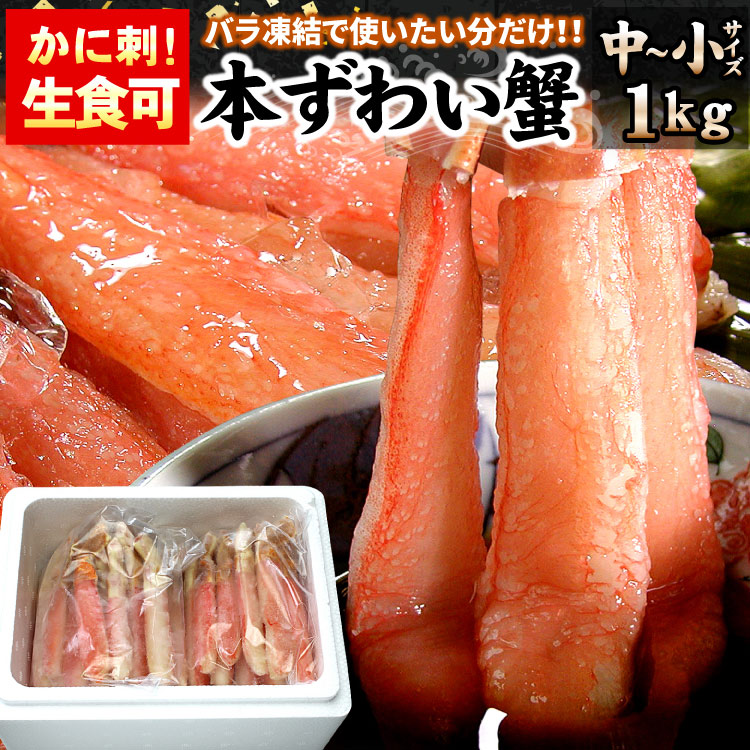 カニ生食可 中-小サイズ 本ずわい蟹 かにしゃぶ 合計1kg入 ズワイガニ ズワイ蟹 カニ ポーション 海鮮 送料無料(沖縄宛は別...