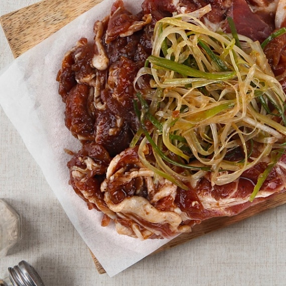 [豚肉] ヤンニョム(味付け)豚プルコギ(白髪ネギ入り) / 400g キャンプ お肉 BBQ 豚肉 焼肉 (冷凍)
