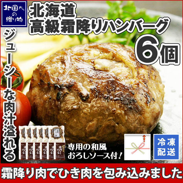 肉 北海道産 牛 高級霜降りハンバーグ 和風おろしソース付き 6個 ギフト 霜降り ハンバーグ 国産 肉 冷凍 グルメギフト お取...