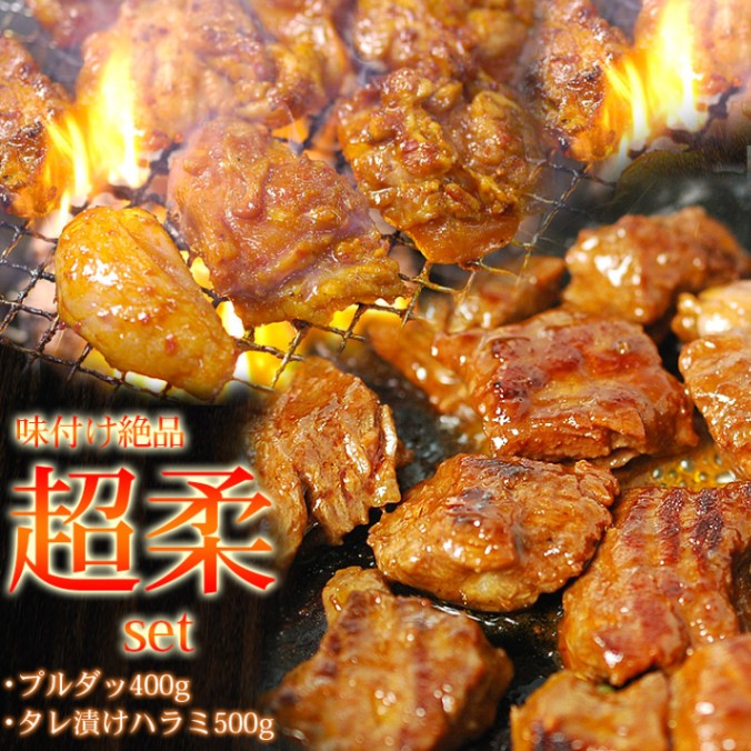 タレ漬け超柔らかい牛ハラミ500gとプルダッ400gの柔らかやみつきセット 冷凍便