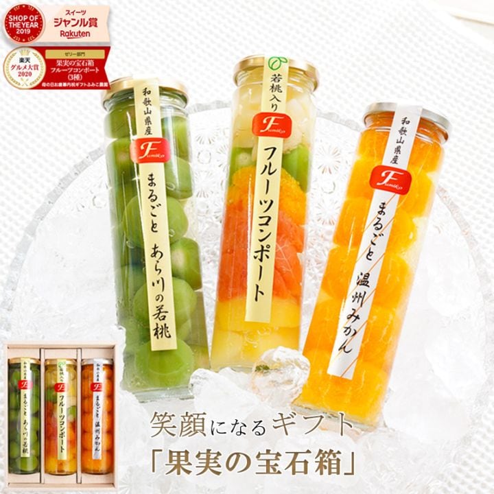 プレゼント スイーツ ギフト和歌山県産 果実の宝石箱 フルーツコンポート ハーフ3本セットまるごとみかん あら川の若桃 フルーツミ...