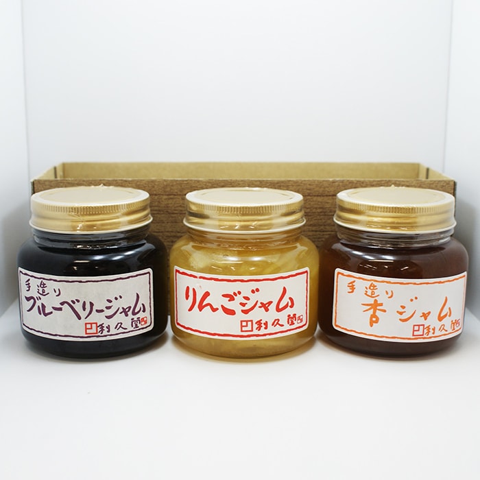 利久堂手造りジャム3種箱入(手造りりんごジャム、手造り杏ジャム、手造りブルーベリージャム)