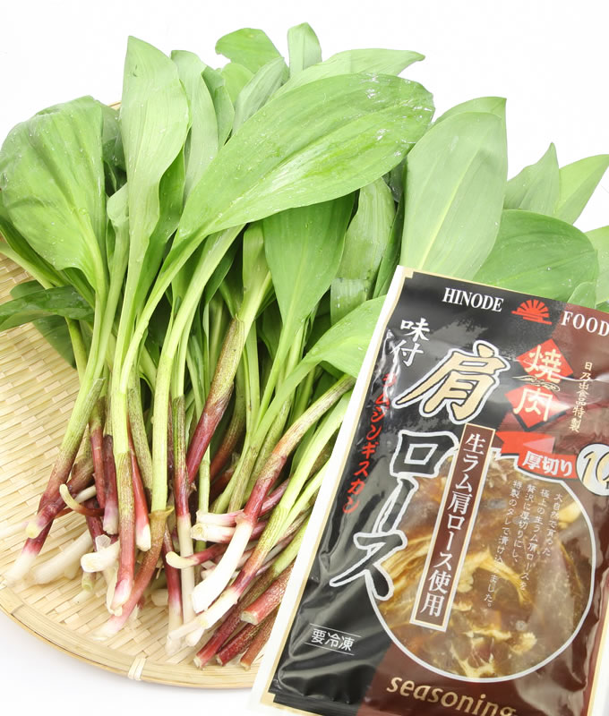 【送料無料】北海道産天然行者にんにく(500g入)& 味付ラム肩ロース(厚切り)500g入セット