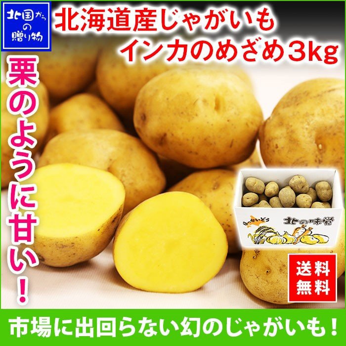 北海道産 じゃがいも インカのめざめ S-Lサイズ 3kg前後 北海道 ジャガイモ じゃが芋 芋 インカ 北国からの贈り物 送料無...