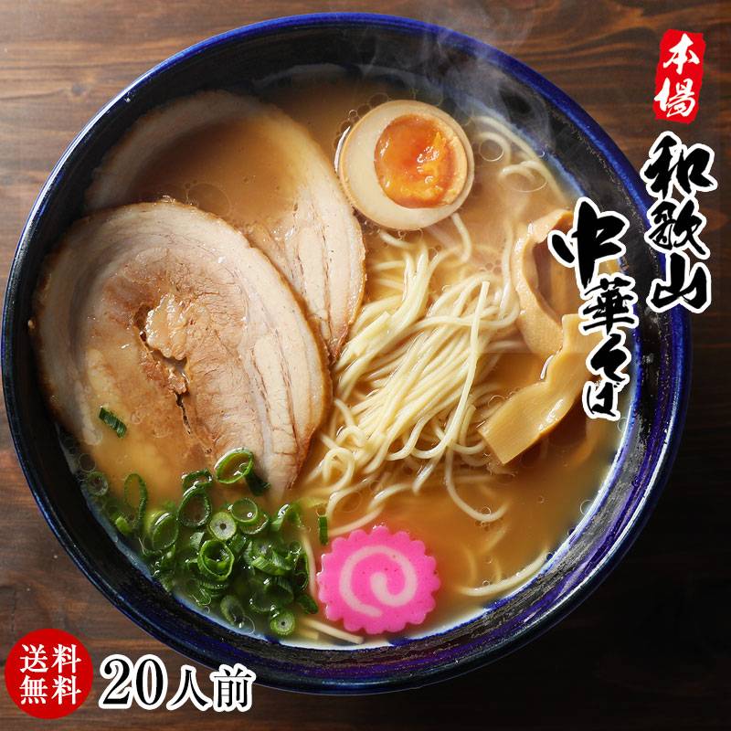 濃厚和歌山ラーメン たっぷり20食スープ付半生製法にこだわったストレート細麺とコクのある豚骨醤油スープ!送料無料※北海道、沖縄除く