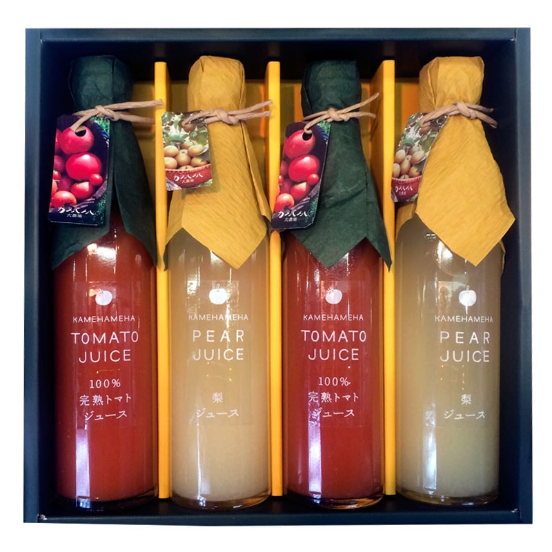 カメハメハ大農場の農家カフェ「福井県産100%完熟トマトと福井県産梨のジュース300ml×4本セット」