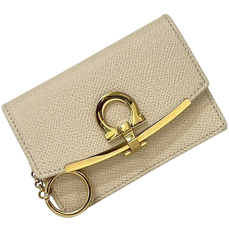 サルヴァトーレ フェラガモ カードケース ベージュ ガンチーニ 22-D198 0740823 未使用 美品 名刺入れ レザー S...