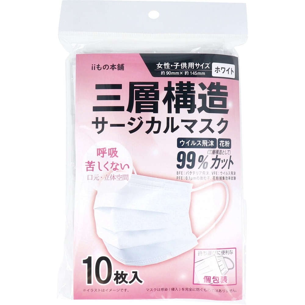 三層サージカルマスク 女性・子供用サイズ 個包装 10枚入