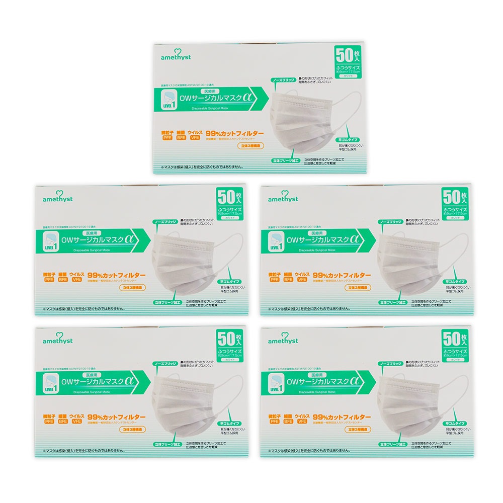 OWサージカルマスクαゴムタイプ50枚入 5個セット | 医療用 不織布マスク 不織布製(3層構造) 送料無料 大衛 アメジスト