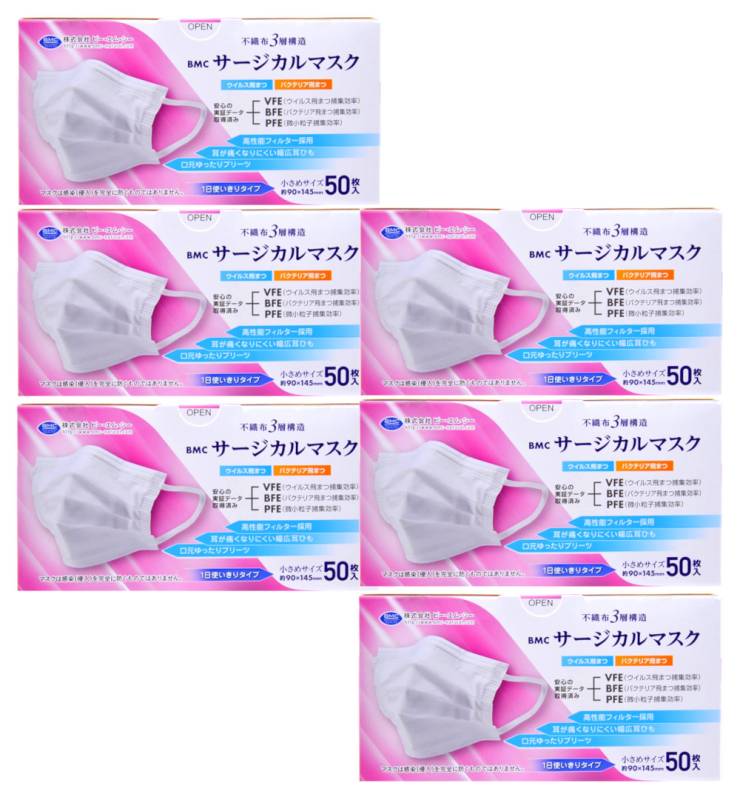 BMC ビー・エム・シー サージカルマスク 小さめサイズ 50枚×6【6個セット】不織布マスク 医療用マスク クラス1 送料無料