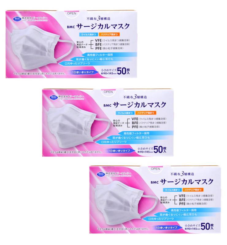 BMC ビー・エム・シー サージカルマスク 小さめサイズ 50枚×3【3個セット】不織布マスク 医療用マスク クラス1 送料無料